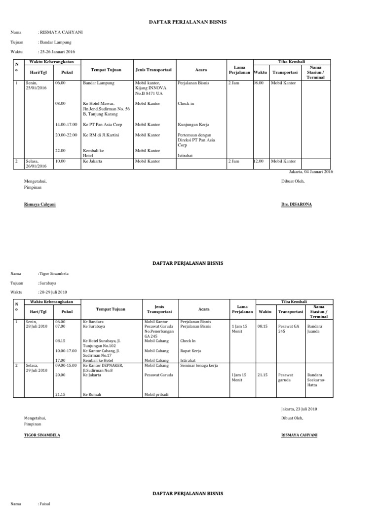 Perjalanan dinas pimpinan biasanya dilakukan karena berbagai kepentingan, antara lain karena adanya pelaksaan pengawasan di kantor cabang atau perusahaan cabang, seminar, diklat, tender, janji pertemuan, penjajakan kerja sama, menghadiri acara seremonial, kegiatan social, dan berbagai kegiatan lainnya, sehubungan dengan perjalanan dinas tersebut, pimpinan. Format jadwal kegiatan pimpinan sebagai berikut. Menyetujui kegiatan yang diusulkan namun untuk waktu penyelenggaraan terlalu lama. Konfirmasi ulang mengenai kunjungan ke kantor cabang di surabaya dan memesan tiket pesawat garuda indonesia airlines. Contoh jadwal perjalanan dinas pimpinan ke luar kota pemimpin perusahaan memiliki berbagai tugas dan tanggung jawab dalam menjalankan tugas rutin posisinya. Wira karya sejati cabang jakarta. B erikut ini adalah pembicaraan seorang atasan dengan sekretarisnya pada tanggal 24 oktober 2010. Contoh jadwal perjalanan dinas pimpinan ke luar kota. Buatlah agenda perjalanan dinas pimpinan dengan data data berikut sesuai dengan format yang lengkap dan benar.