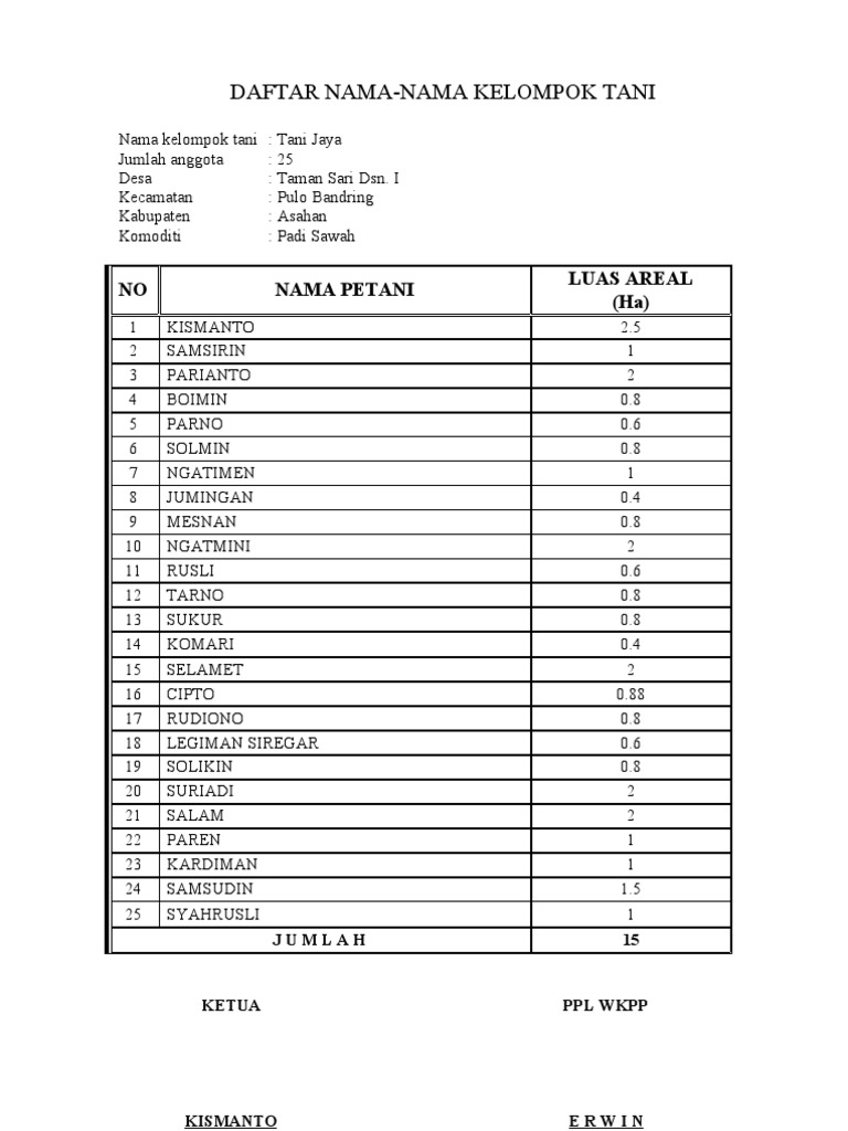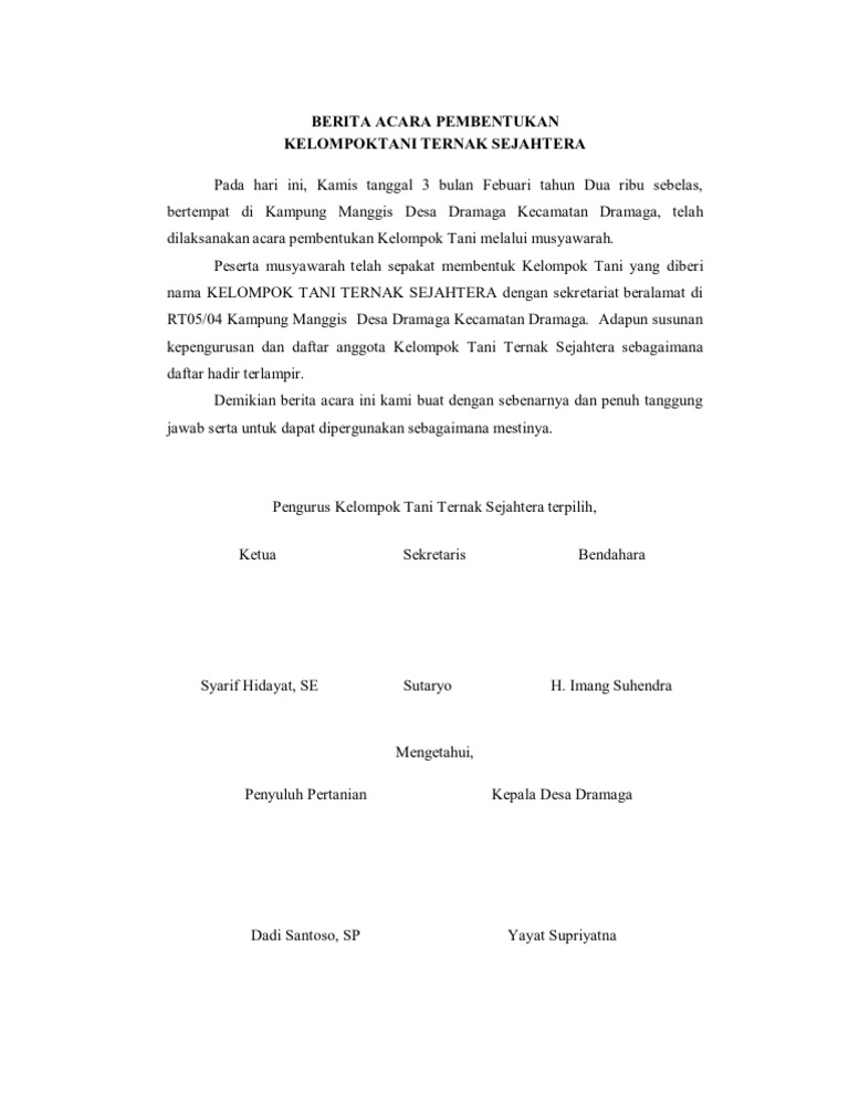 Contoh surat pernyataan anggota kelompok tani. Kppk kecamatan padang panjang barat dan ppl busur kesimpulan menetapkan pengurus kelompok tani sepakat. Peternakan melakukan rekapitulasi rdkk pupuk bersubsidi tingkat. Perangkat administrasi yang baik dan benar diperlukan sebagai bahan informasi bagi kelompok maupun. Tepatnya berada di dusun krajan ii desa banyuputih kidul kelompok tani tangguh berdiri pada tahun 1986 dengan nik : Mentaati ad/art yang telah disepakati. Pertemuan anggota kelompok tani dipimpin oleh ketua kelompok tani yang didampingi penyuluh pertanian untuk membahas, menyusun dan menyepakati daftar kebutuhan sarana produksi 6 tepat (tepat jenis, jumlah, waktu, tempat,. Kelompok tani merupakan kelembagaan petani non formal. Perumusan rub/rdk/rdkk untuk kegiatan usaha dengan pembiayaan kredit.